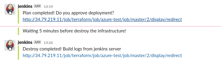 slackSend color: '#BADA55', message: "Apply completed! Build logs from jenkins server ${env.RUN_DISPLAY_URL}"