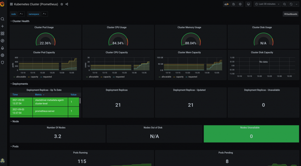 Además, añadiendo una monitorización inicial tanto con Prometheus como con Grafana somos capaces de crear un sistema de avisos que nos ayude a comprobar y chequear el correcto comportamiento de toda nuestra plataforma para así poder evitar futuras incidencias.
