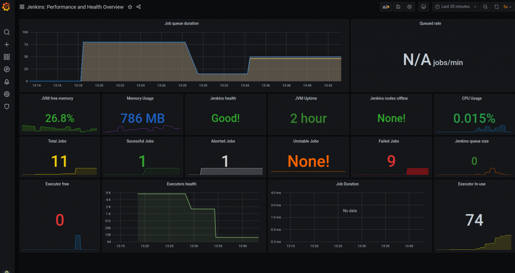 Una vez realizado todas las comprobaciones pertinentes vamos a ejecutar el job de prueba en Jenkins para ver como escala nuestra plataforma así como el envío de alertas y la monitorización que realizaremos en Grafana.