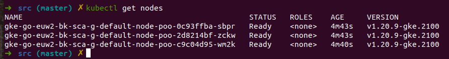 Una vez conectado al cluster de GKE haremos una revisión de los nodos desplegados: