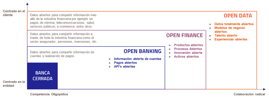 Por otro lado, Open Finance es una extensión del concepto de Open Banking, pero en lugar de limitarse a la banca tradicional, incluye todas las empresas financieras que ofrecen productos y servicios financieros, como las aseguradoras, las empresas de inversión y las empresas de gestión de patrimonio. De esta forma, el concepto de Open Finance amplía la cantidad de datos que pueden compartirse y la cantidad de empresas que pueden beneficiarse de ello.